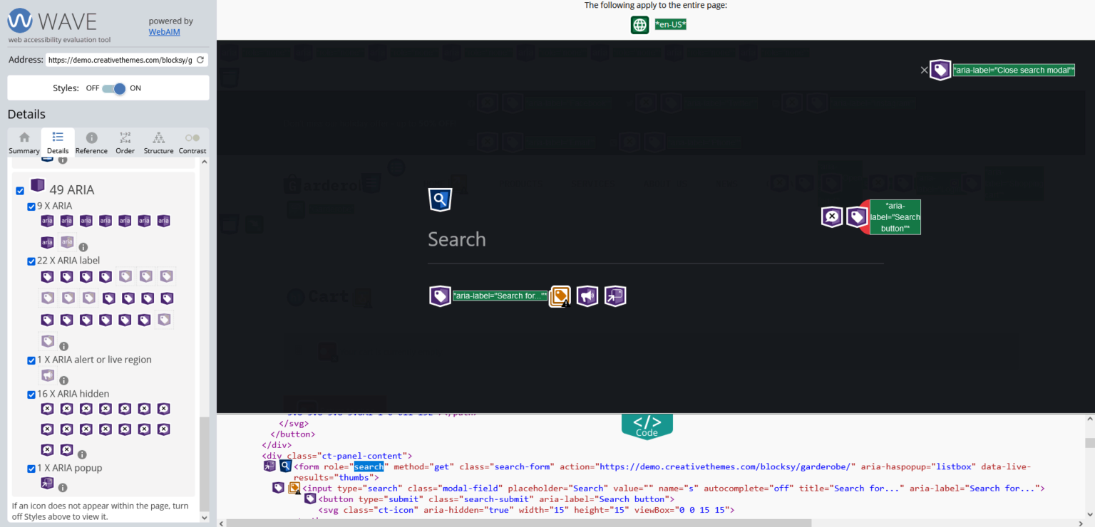 Alternativ können Sie ein Tool zum Testen der Barrierefreiheit wie WAVE verwenden , um den Code zu visualisieren: