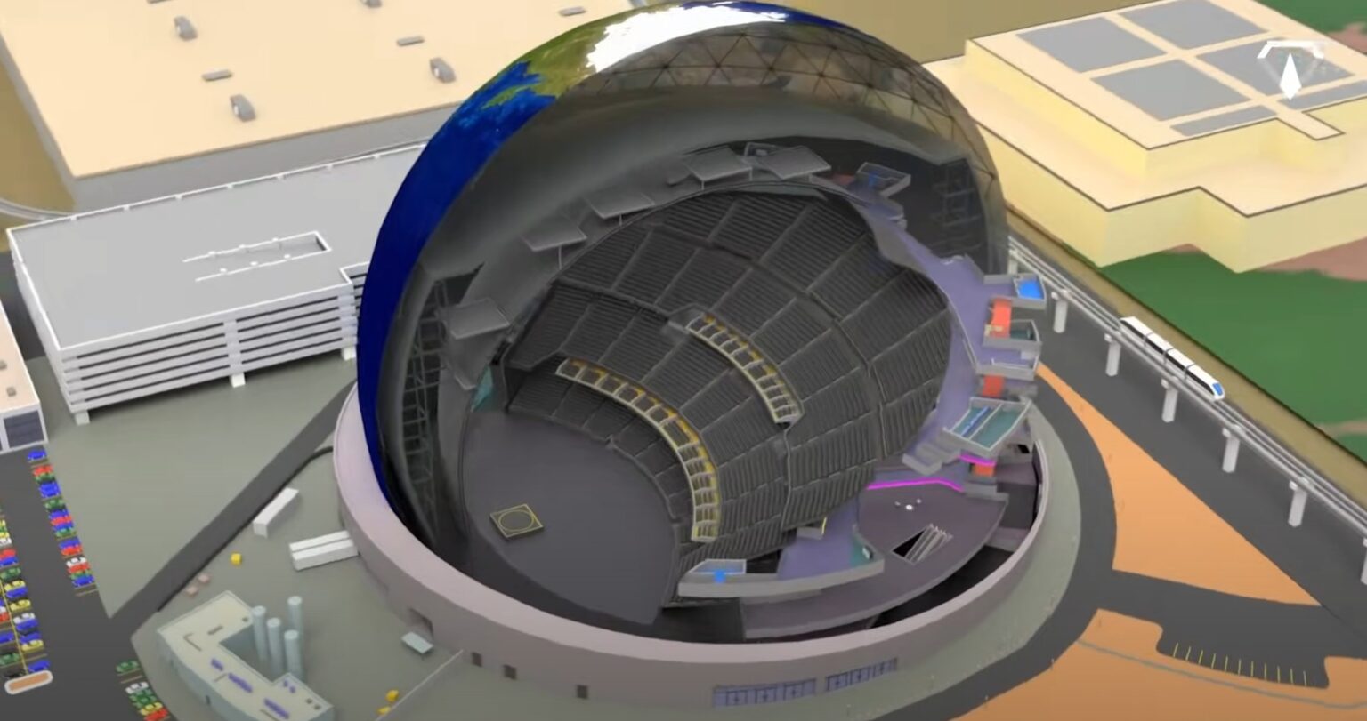 - Innenraum: Im Inneren bietet die Sphere Platz für etwa 18.000 Besucher. Das Herzstück ist ein riesiger LED-Bildschirm, der sich über 16.000 m² erstreckt und die höchste Auflösung der Welt besitzt.