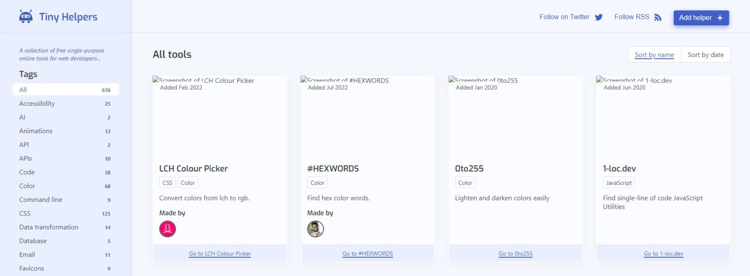 Die 636 Webwork-Tools in Tiny Helpers decken verschiedene Bereiche des Webworking-Bereiches ab: HTML, CSS, JavaScript, Schriften, Performance, SVG, HTTP, Bildbearbeitung, Favicons und vieles mehr.